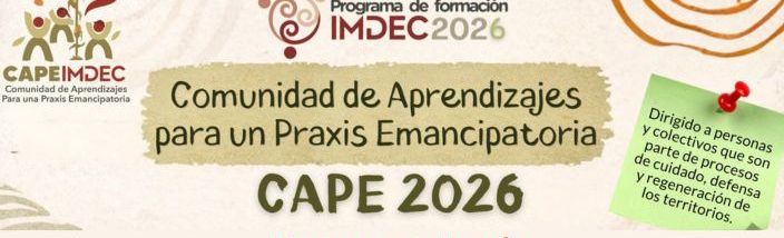 Formación -política y metodológica- para el cuidado, defensa y regeneración de los territorios, desde la Educación Popular. Te invitamos a formar parte de la Comunidad de Aprendizajes para una Praxis Emancipatoria, la CAPE, ciclo 2026; un espacio de encuentro y diálogo para la construcción colectiva de conocimientos y nuevas prácticas sociopolíticas, más coherentes, fortalecidas y articuladas, en el contexto de emergencia civilizatoria